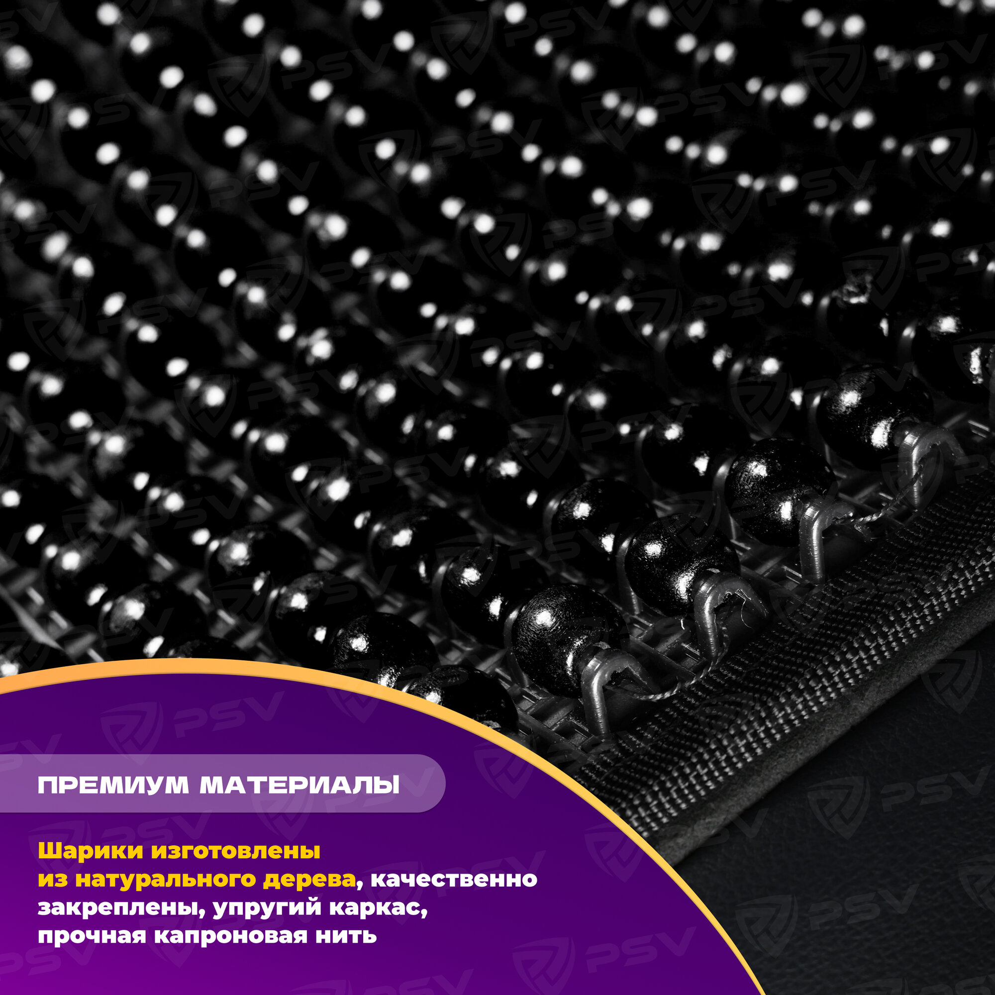 PSV 137158 Накидка на сиденье массажная деревянные шарики PSV 2010 большая с поддержкой черная