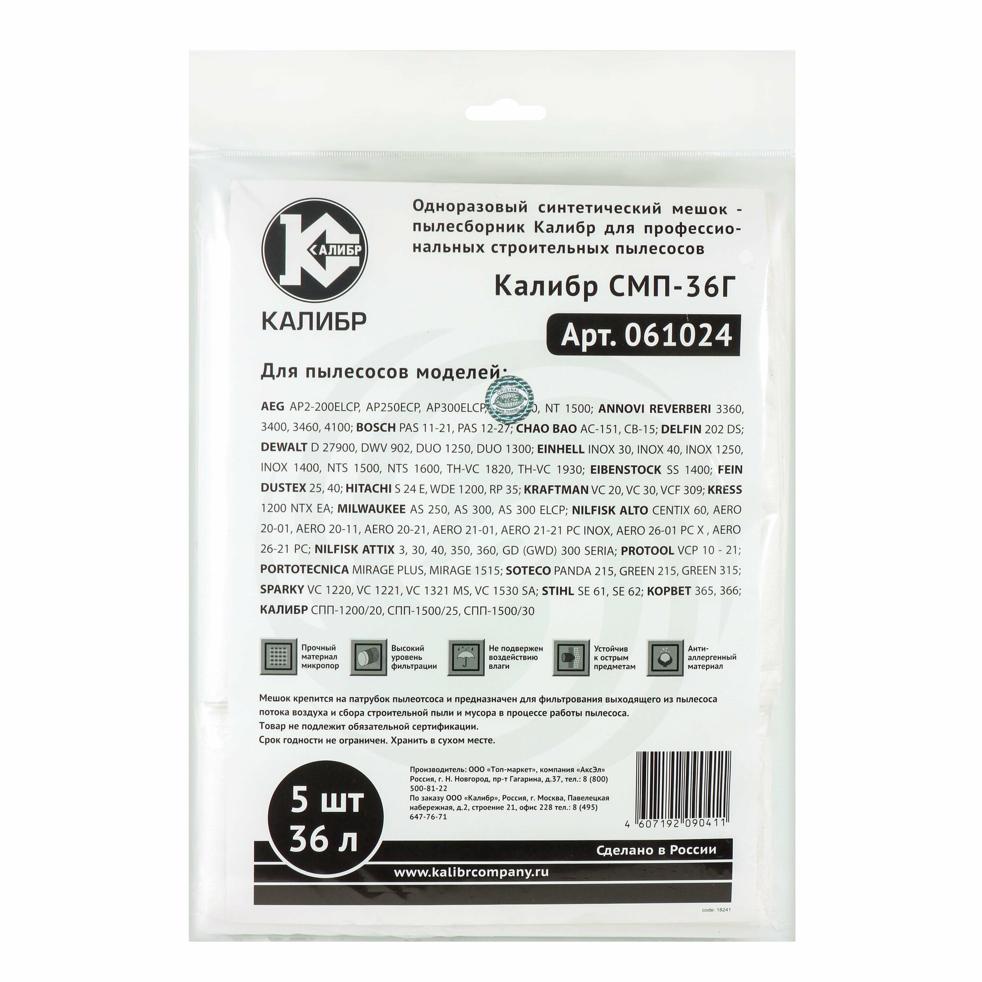 Мешки пылесборники СМП-36Г, до 36 л, 5 шт. Калибр 00000067215