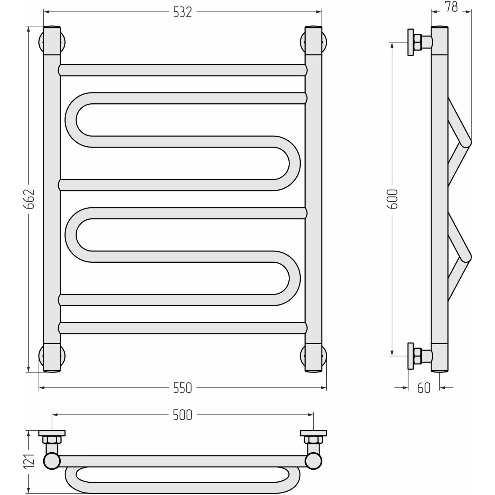 Полотенцесушитель водяной Сунержа Элегия+ 600х500 Без покрытия