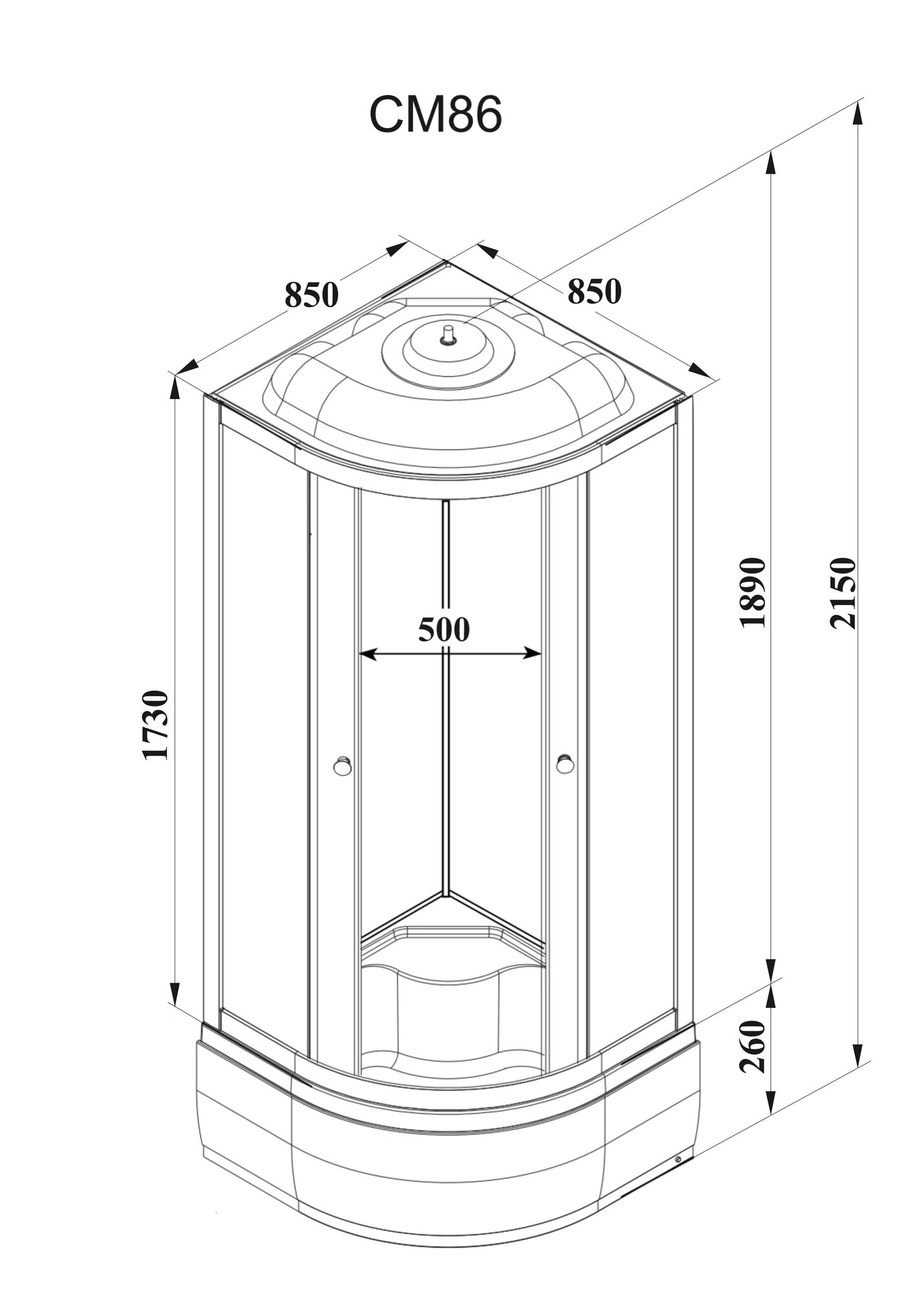 Купить Душевая кабина Parly CM86 (85х85х215), со средним поддоном, профиль белый, стекло тонированное