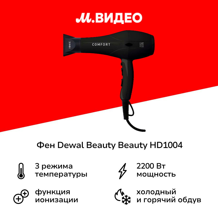 Dewal Beauty HD1004-Black Фен dewal beauty comfort black, черный, 2200 вт, 1 насадка