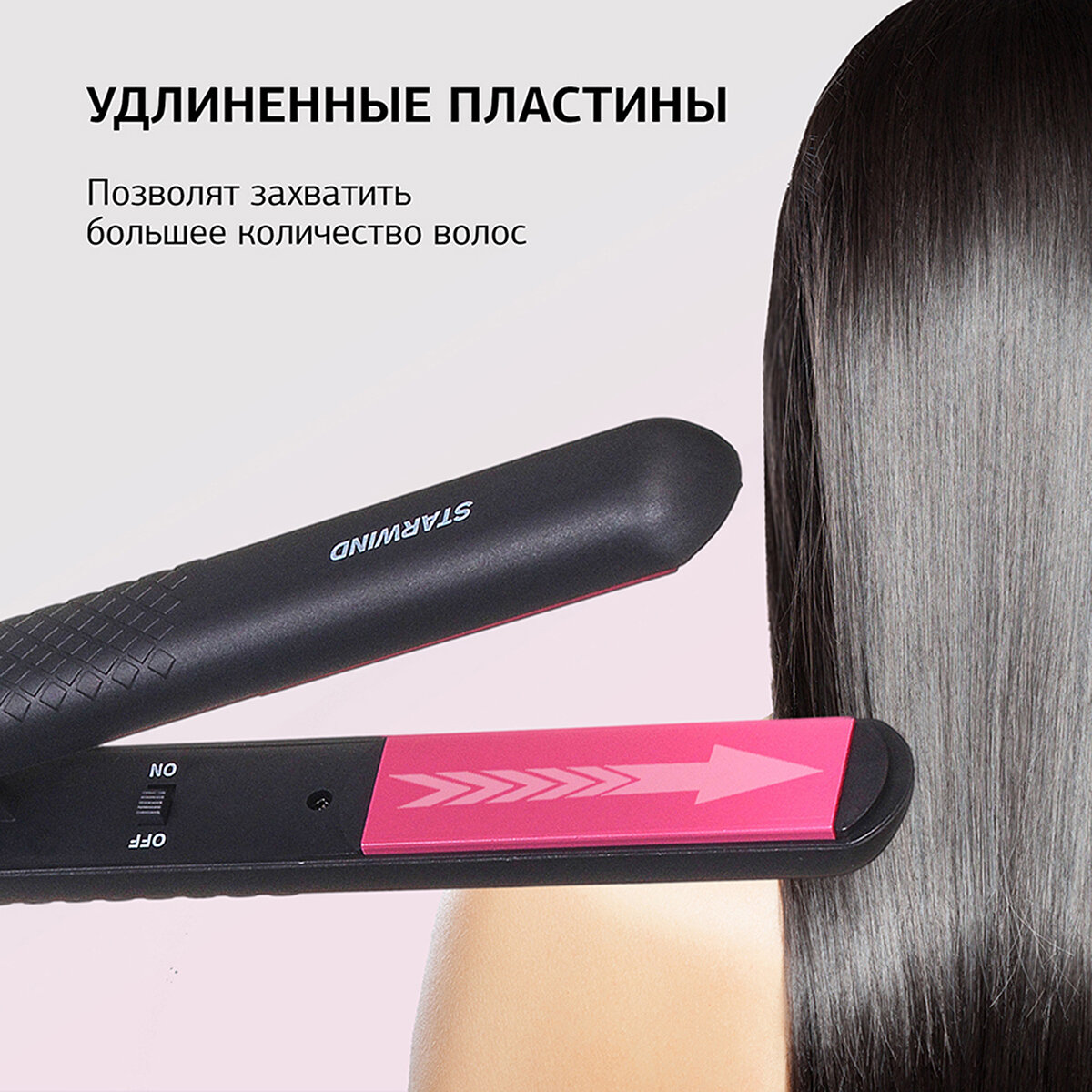 Выпрямитель для волос STARWIND SHE5500, черный и розовый