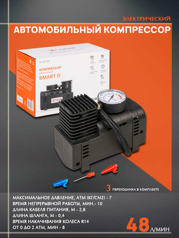 Автомобильный компрессор AIRLINE SMART O CA-012-08O 12 л/мин 7 атм черный