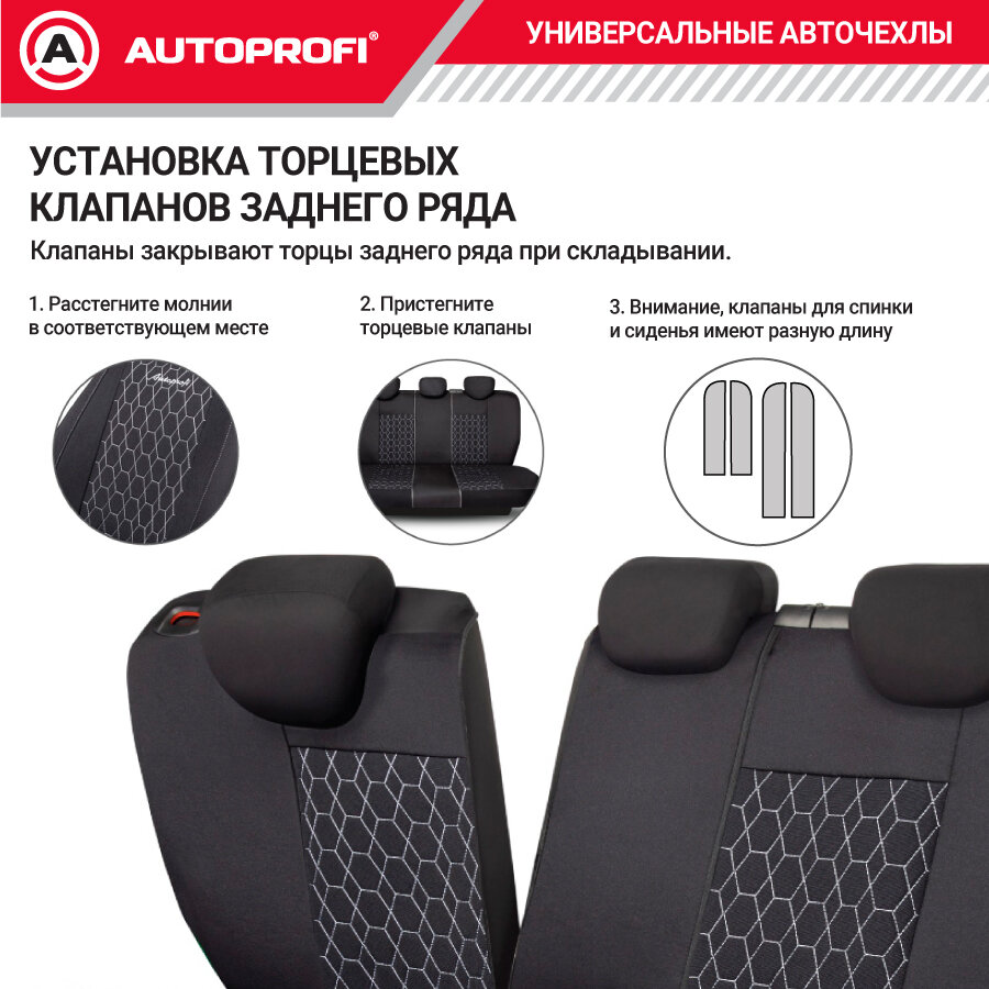 Авточехлы универсальные AUTOPROFI VER-1505 BK/BK VERONA, лён, 5 мм поролон, 3D крой, 15 пред., чёрый