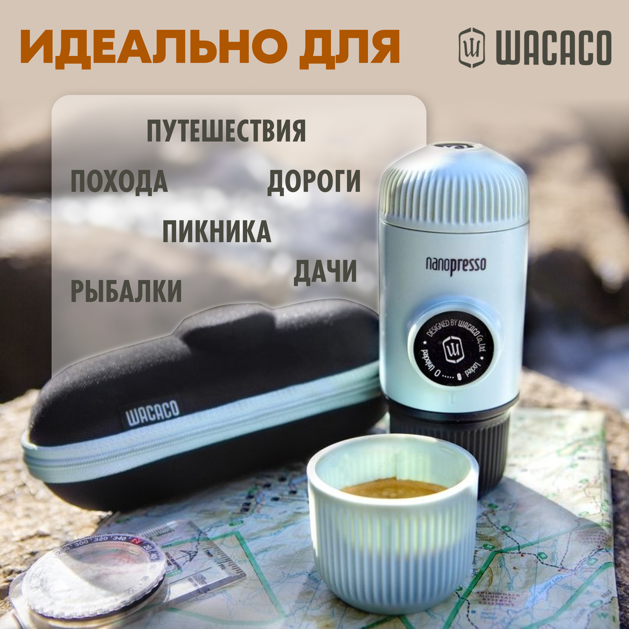 СохранитьРучная портативная кофемашина WACACO Nanopresso Elements, цвет арктический белый. интересное:
