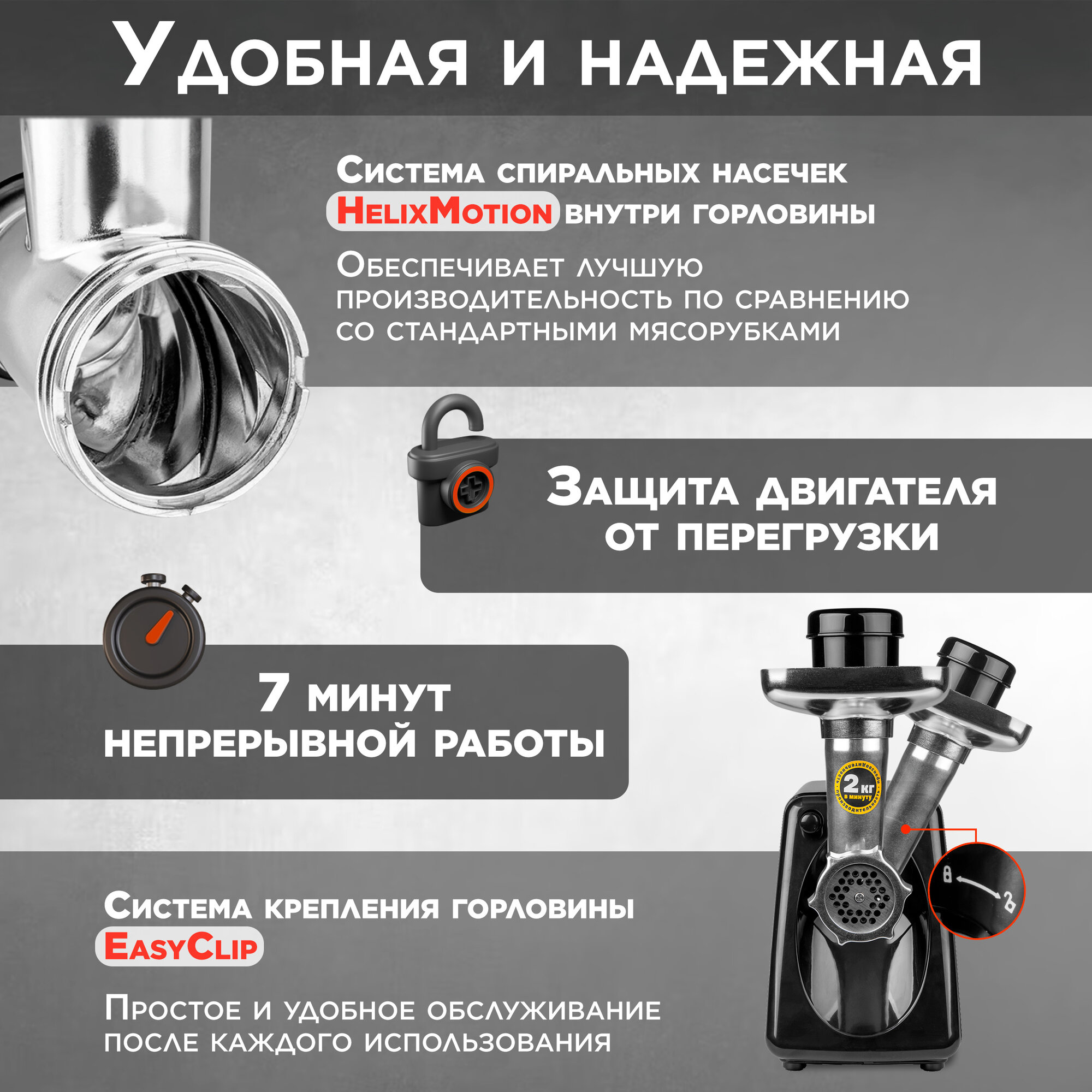 | Диск для фарша | 3 в комплекте, диаметр отверстий 3 мм, 5 мм, 7 мм |