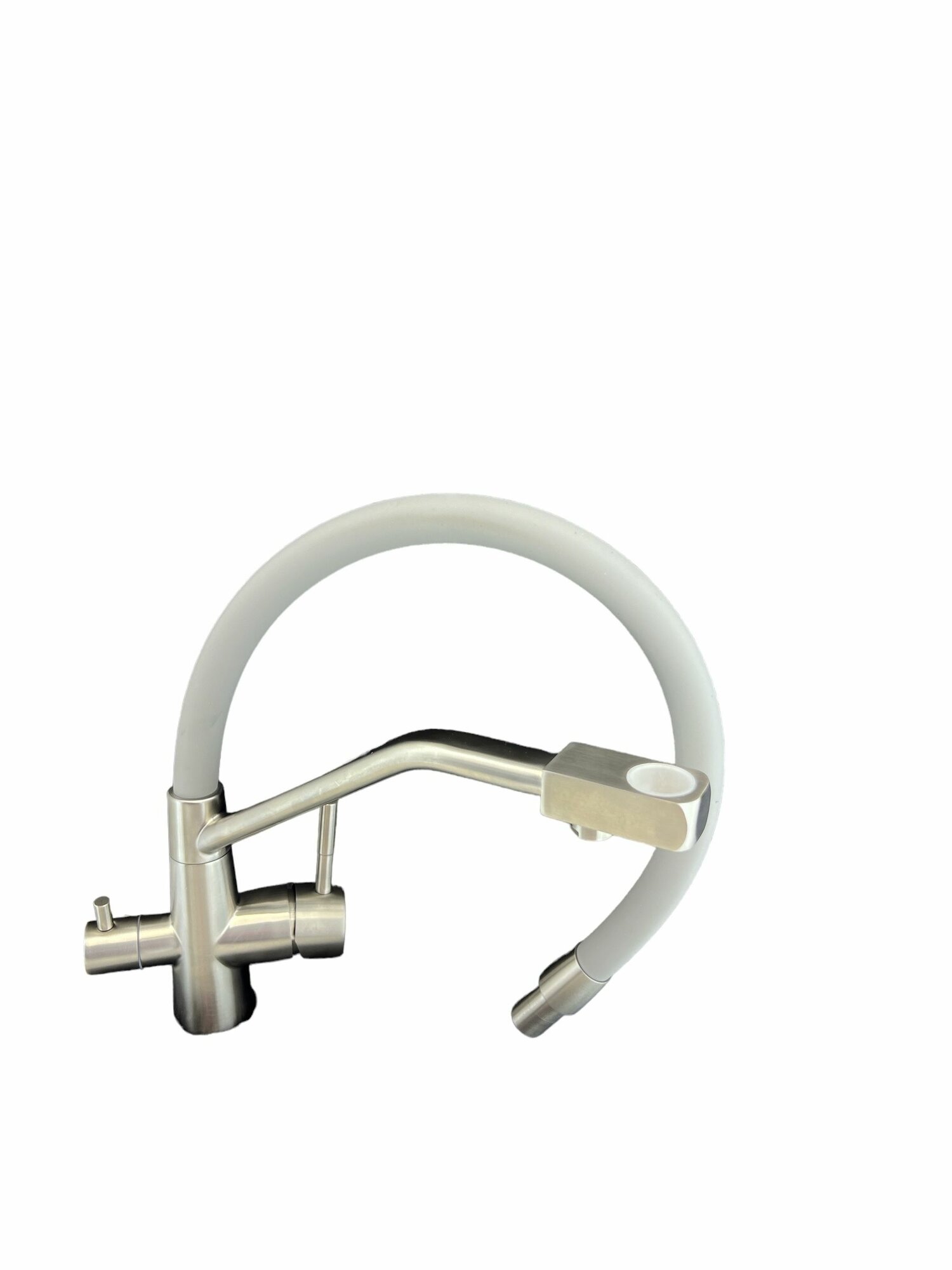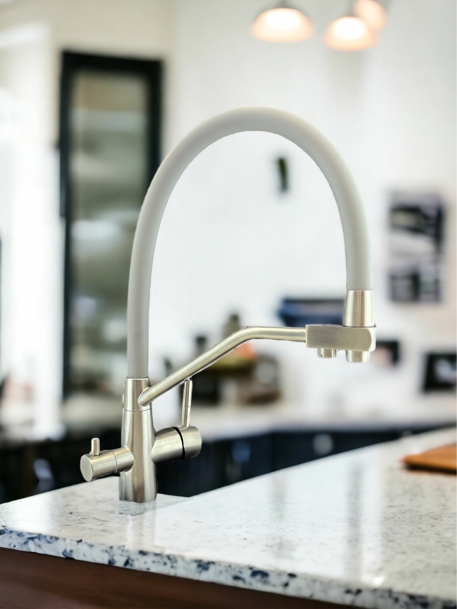 Смеситель для кухни OUTE белый, однорычажный, с дополнительным выводом под фильтр питьевой воды, с гибким изливом.