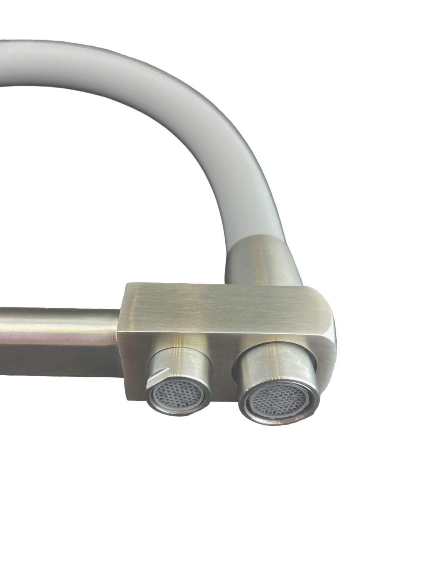 Смеситель для кухни OUTE матовый хром с серым изливом, однорычажный, с дополнительным выводом под фильтр питьевой воды, с аэратором, с гибким изливом.