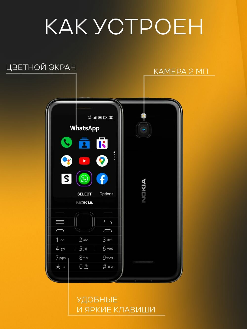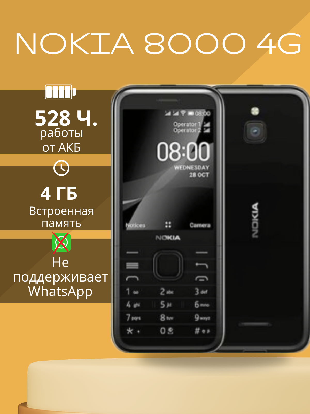 Nokia 8000 4G Мобильный кнопочный телефон интересное: