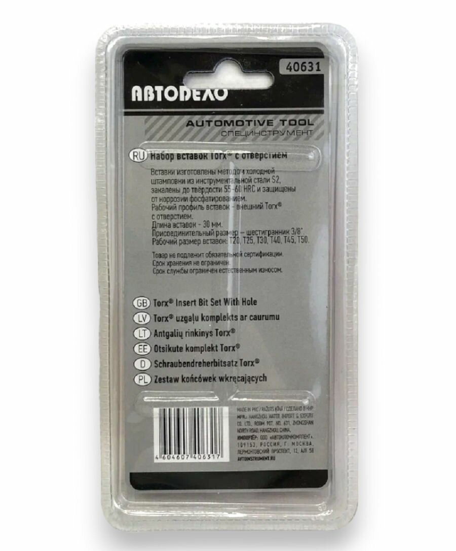 Набор Бит Torx 6 Пр. Т20-50 L=30 Мм С Отверстием Автодело АвтоDело арт. 40631
