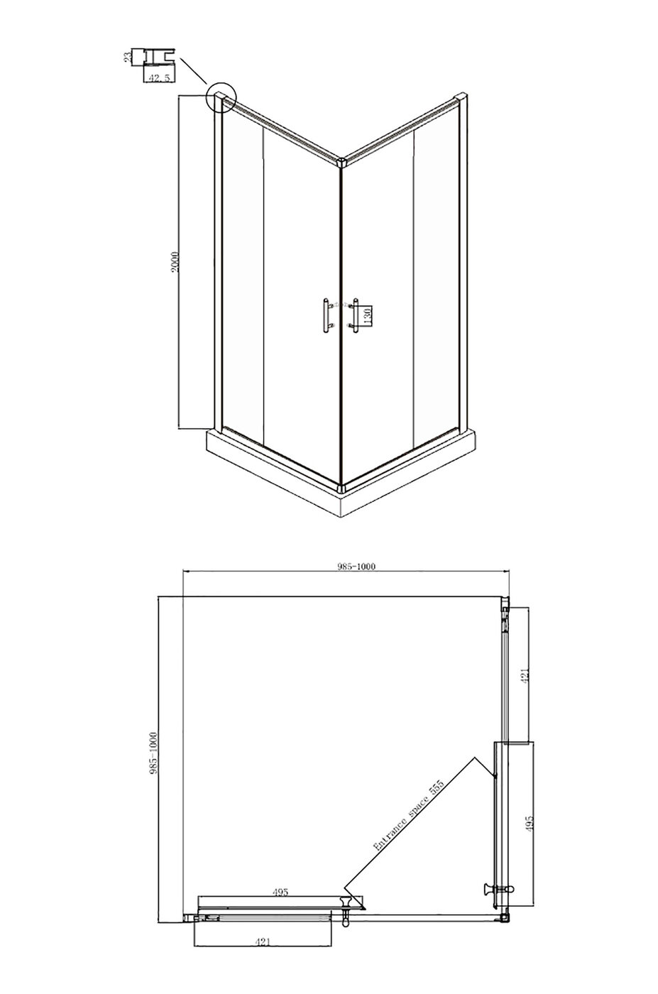 Душевое ограждение Ambassador Kingston 14011103 1000x1000x2000