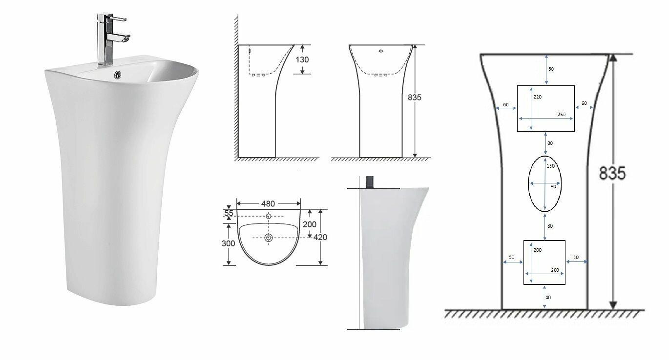 Раковина с пьедесталом Ceruttispa Simona 480x420x835