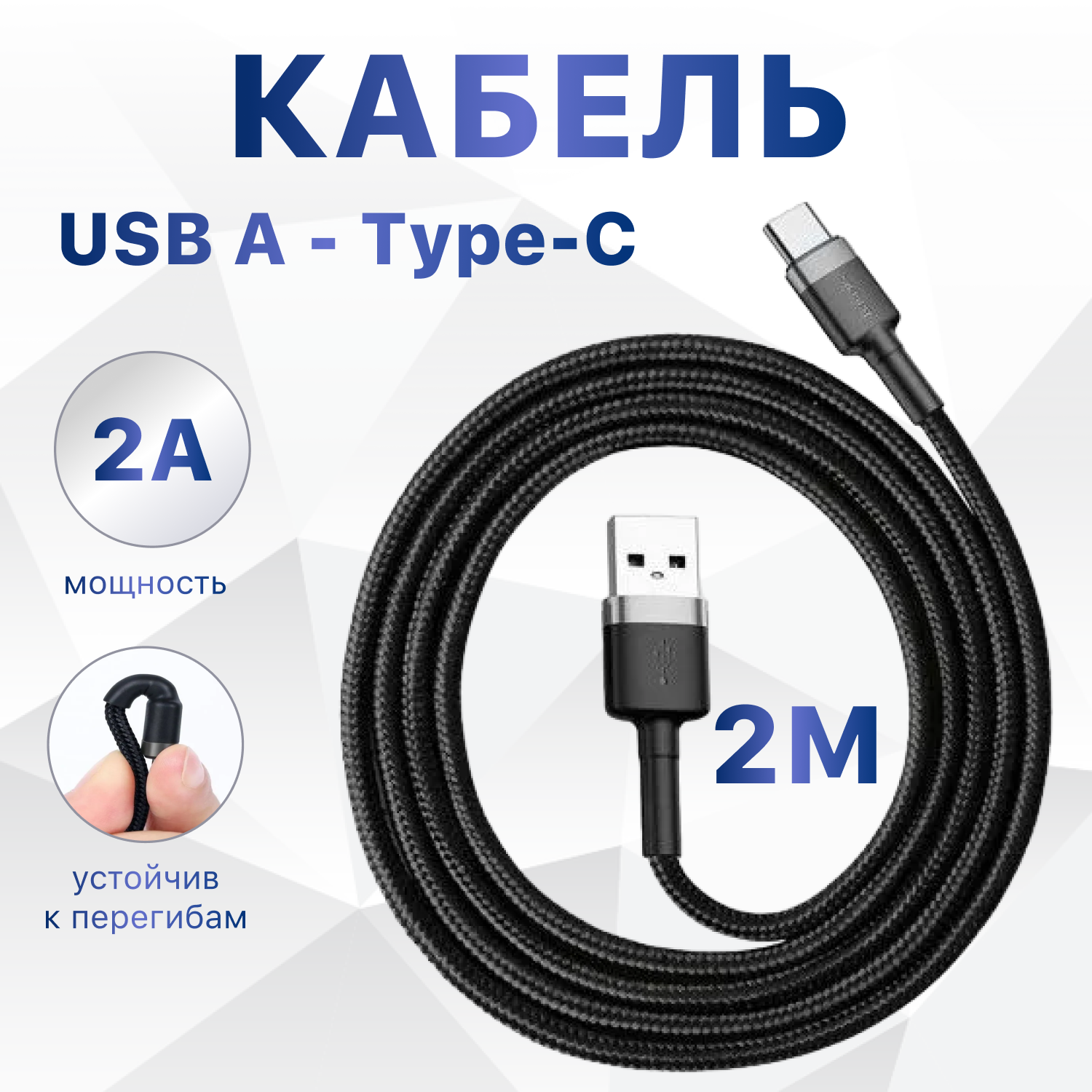 Кабель usb type c 2 метра baseus провод Type C кабель тайпси