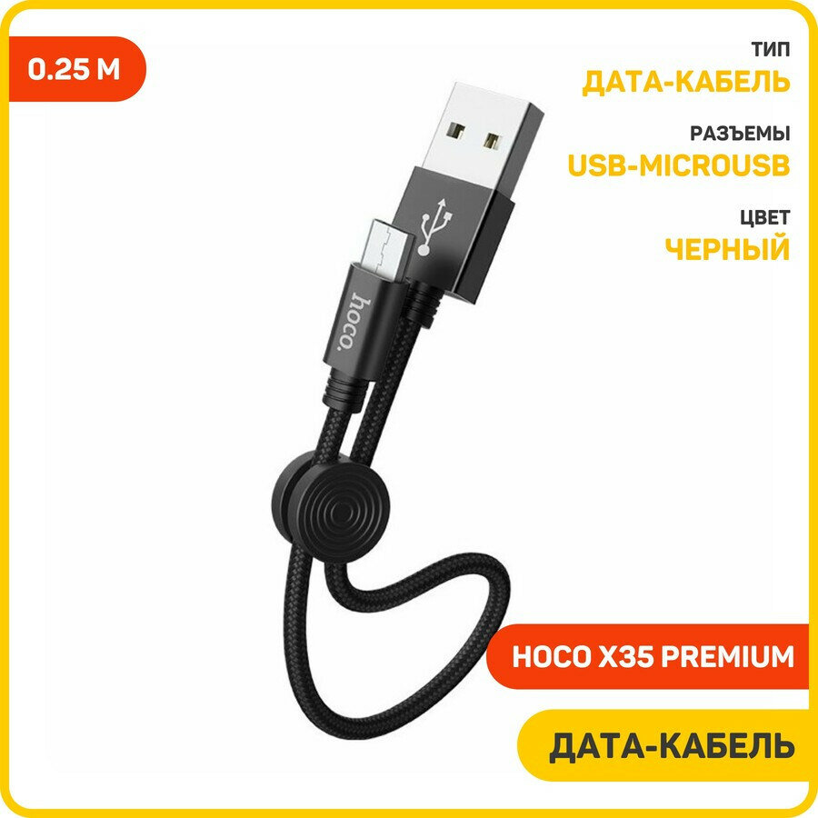 Кабель Hoco X35 Premium USB - microUSB, 0.25 м, черный