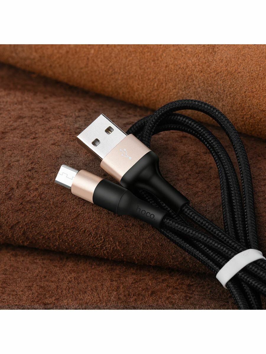 Дата-кабель Hoco X26 USB-MicroUSB, 1 м, черный с золотом