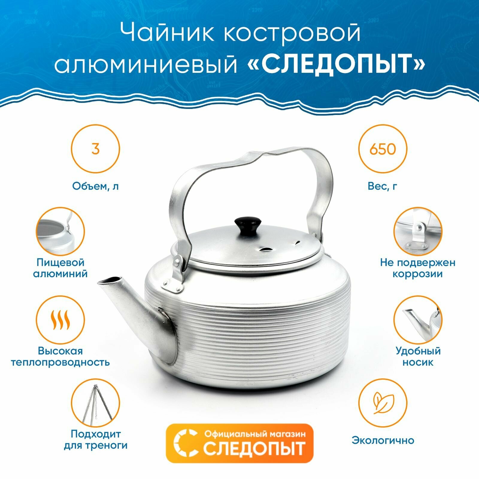 Чайник следопыт костровой, 3 л