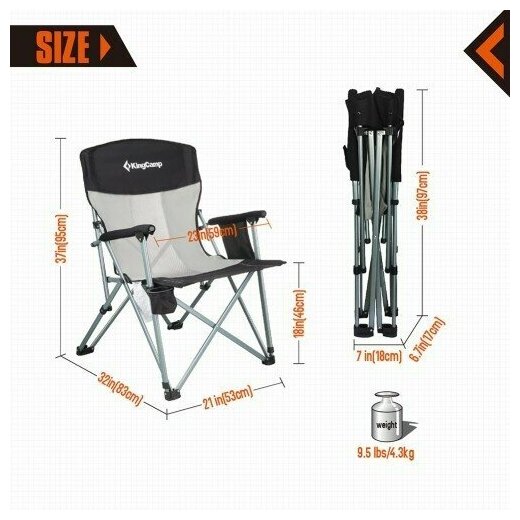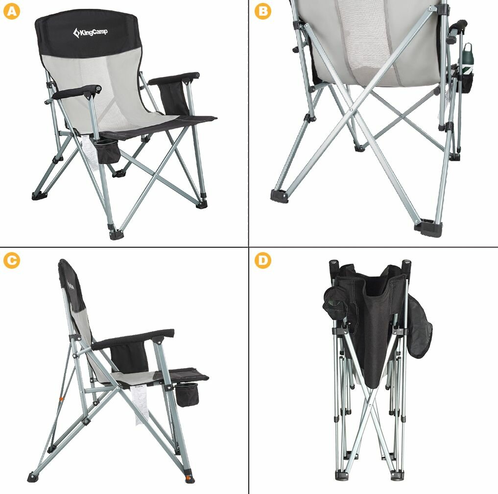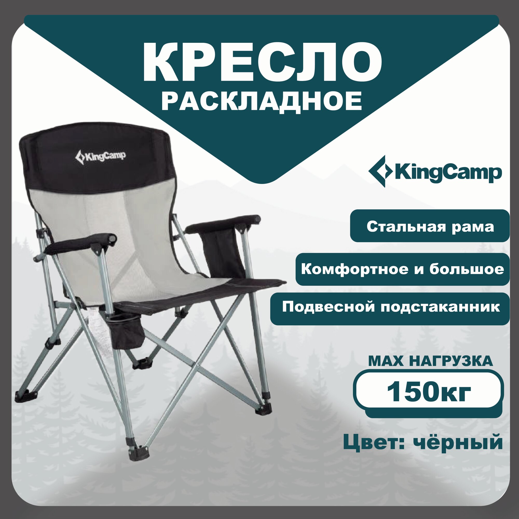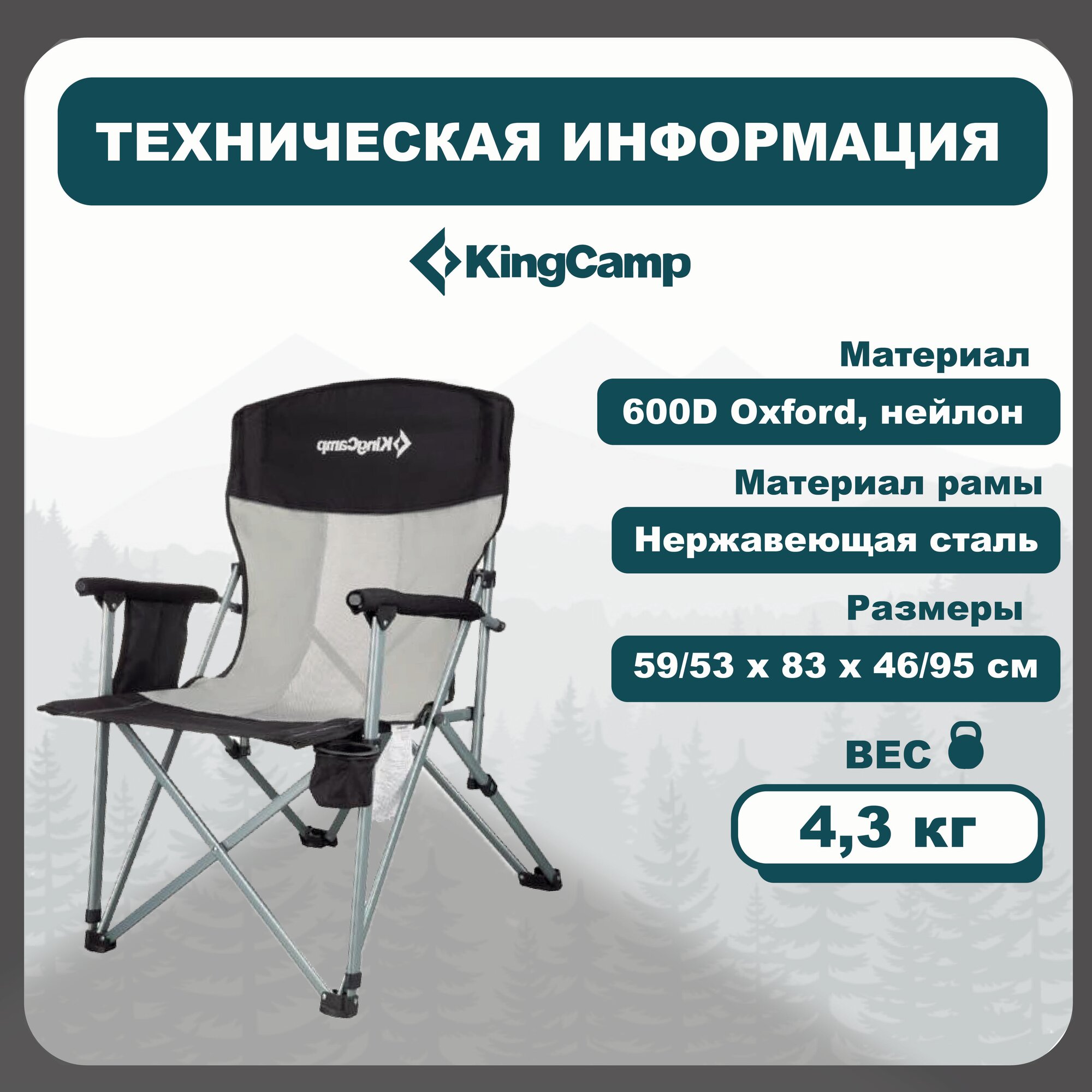 Кресло туристическое раскладное со спинкой KingCamp KC3825 Hard Arm Chair, серый, черный интересное: