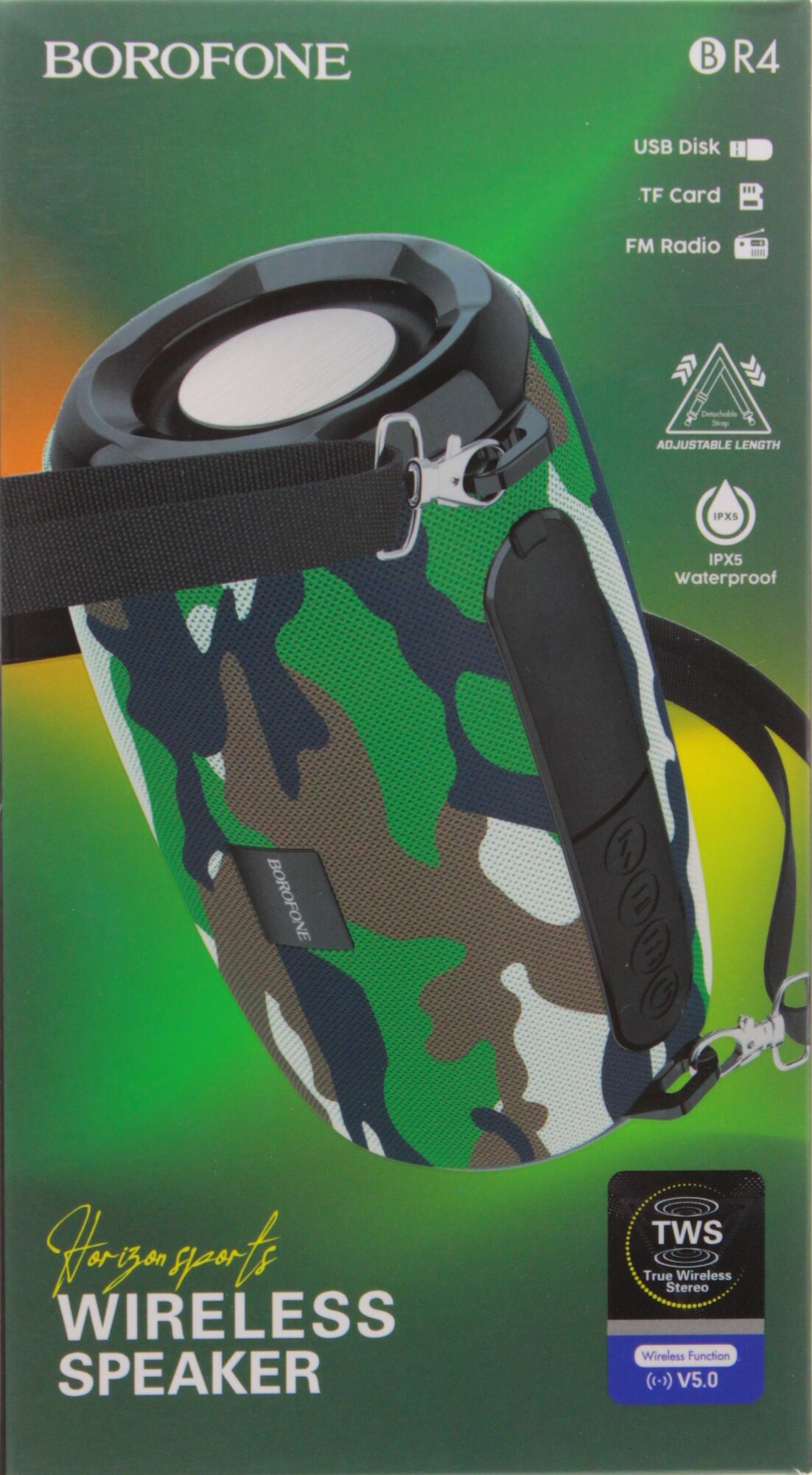 Беспроводная колонка BOROFONE BR4 Horizon sports, Bluetooth, 500 мАч, 5 Вт, зеленый камуфляж, TF, USB