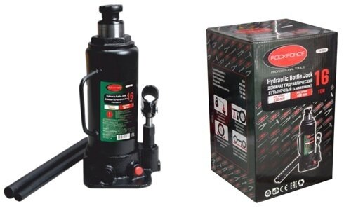 Домкрат гидравлический RF-T91604EURO бутылочный с клапаном 16т (выс.подъема 205-390мм) ROCKFORCE 12, ROCK FORCE RFT91604EURO (1 шт.)