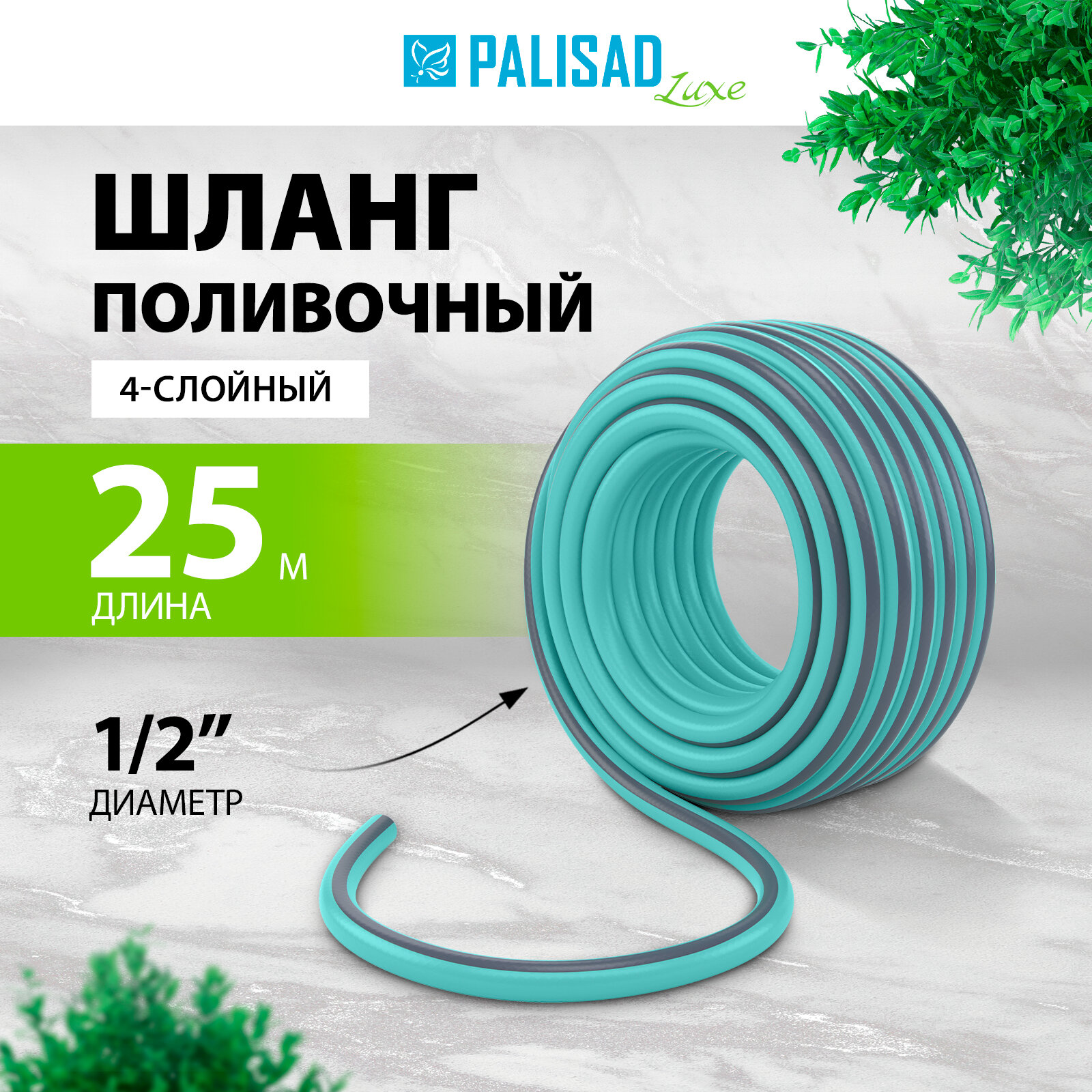 Шланг 4-х слойный, поливочный 3/4", 50 м, Мята, Luxe Palisad Palisad