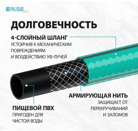 Шланг 4-х слойный, поливочный 3/4", 50 м, Мята, Luxe Palisad Palisad