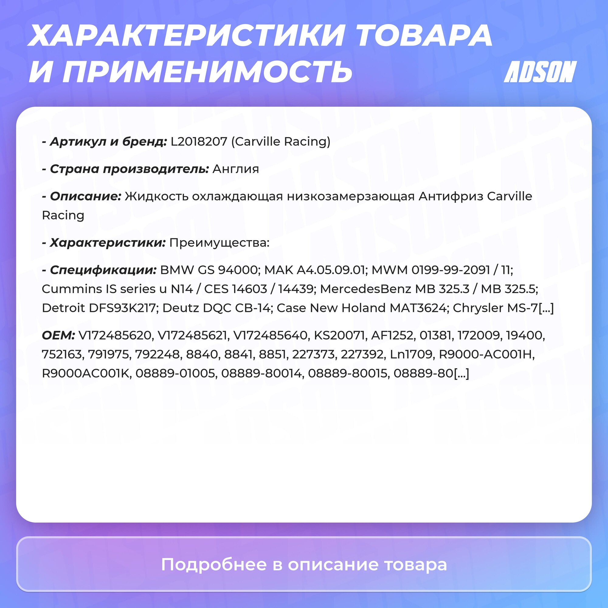 Антифриз Carville Racing арт. L2018209