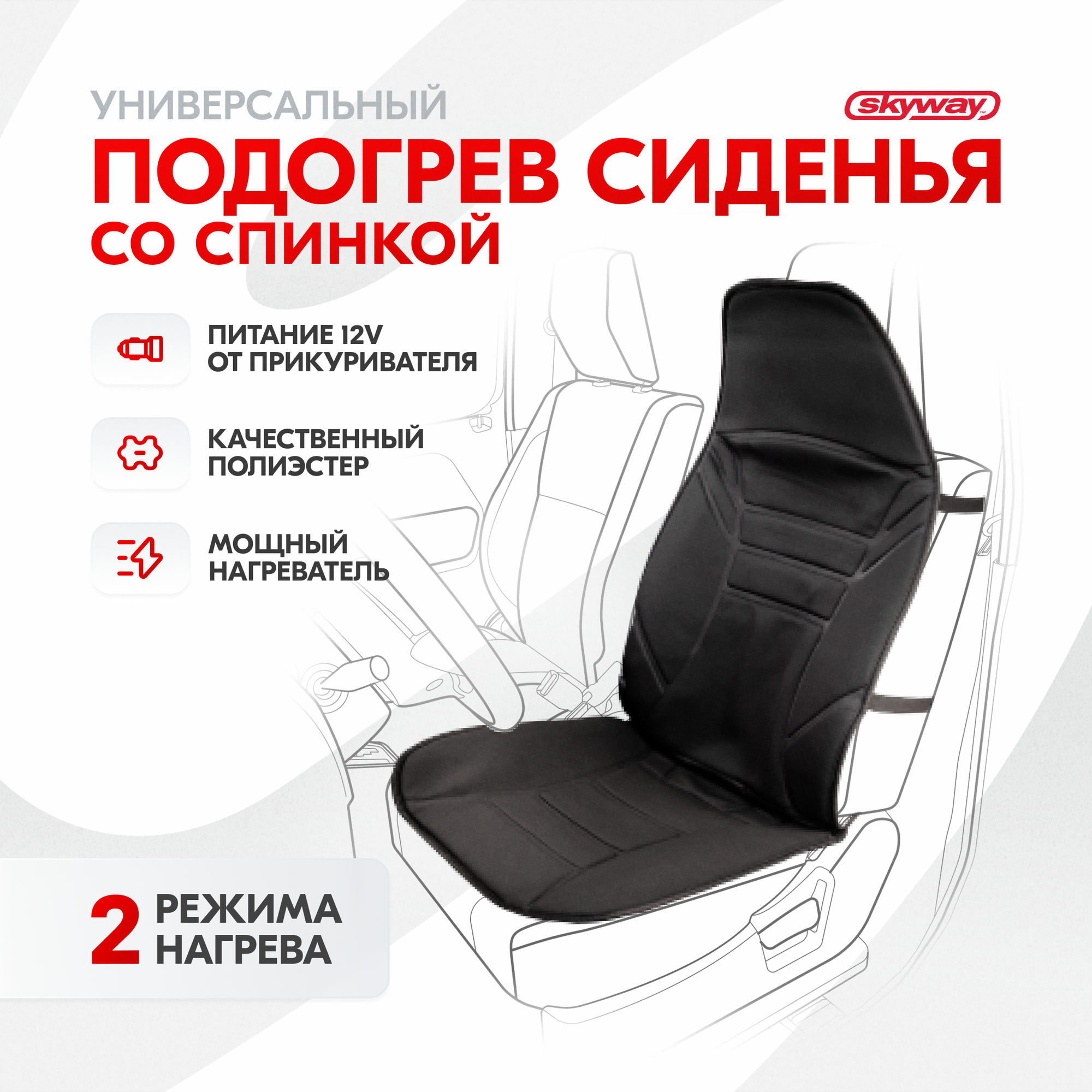 SKYWAY Подогрев сиденья со спинкойс терморегулятором 2 режима черный S02201001
