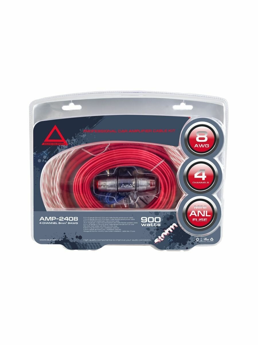 AURA AMP-2408 аудио Комплект для подключения 4х канального усилителя 4х8мм2 AURA AMP-2408