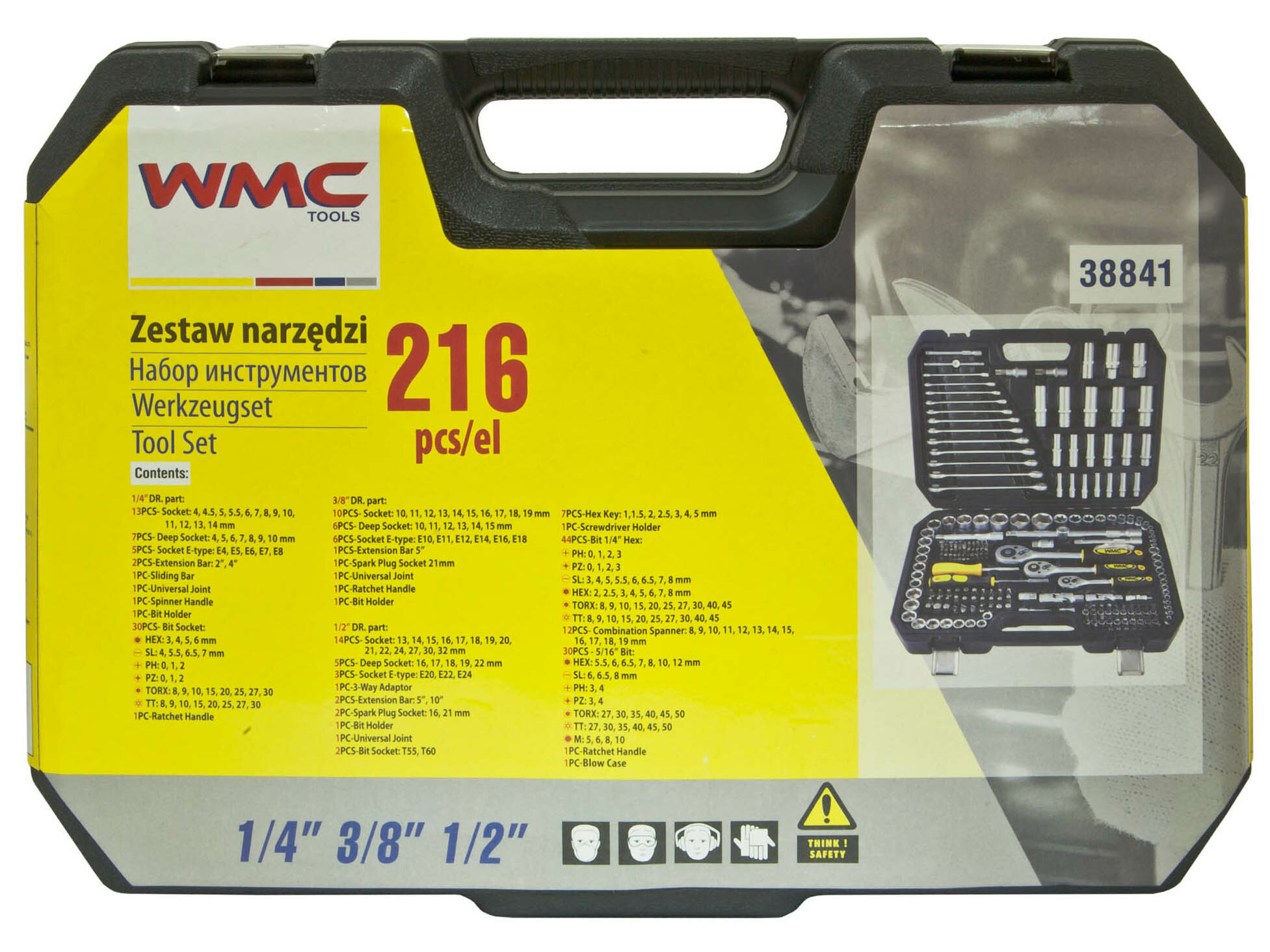 WMC TOOLS 38841 Набор инструментов 216 пр., 1/4, 3/8, 1/2
