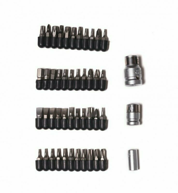 | Биты подробно | 1/4": SL 3, 4, 5, 5.5, 6, 6.5, 7, 8 мм; РН0, РН1, РН2, РН3, PZ0, PZ1, PZ2, PZ0; T8, T9, T10, T15, T20, T25, T27, T30, T40, T45, ТН8 ТН9, ТН10, ТН15, ТН20, ТН25, ТН27, ТН30, ТН40, ТН45; HEX 2, 2.5, 3, 4, 5, 6, 7, 8 мм; 5/16": SL 6, 6.5, 8 мм; PH3, PH4, PZ3, PZ4; SPLINE М5, М6, М8, М10; Т27, Т30, Т35, Т40, Т45, Т50, Т27Н, Т30Н, Т35Н, Т40Н, Т45Н, Т50Н; HEX 5.5, 6, 6.5, 7, 8, 10, 12 мм |
