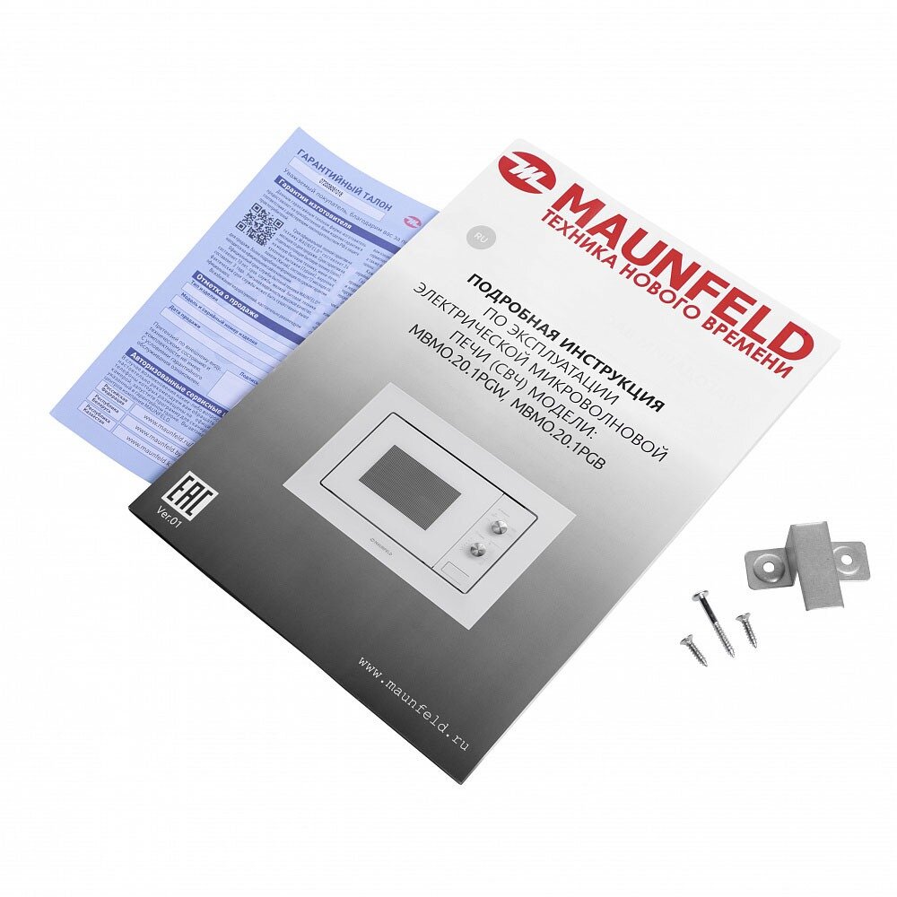 Микроволновая печь MAUNFELD MBMO.20.1PGW, встраиваемая, 20л, 800Вт, белый [ка-00013588]