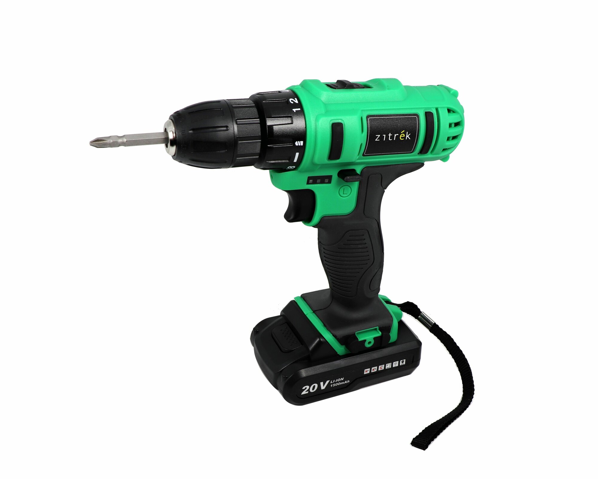 Дрель аккумуляторная Zitrek Greenpower 20-Li (20В Li-ion аккумулятор 2шт ЗУ кейс бита)