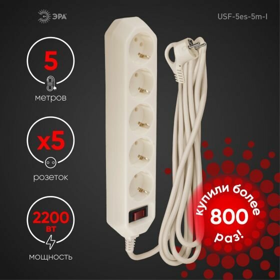 Сетевой фильтр USF-5es-5m-I Сет.фильтр базовая защита, сз, с выкл, 5гн, 5м, ПВС, 10А, сл.кост USF-5, ЭРА Б0019739 (1 шт.)