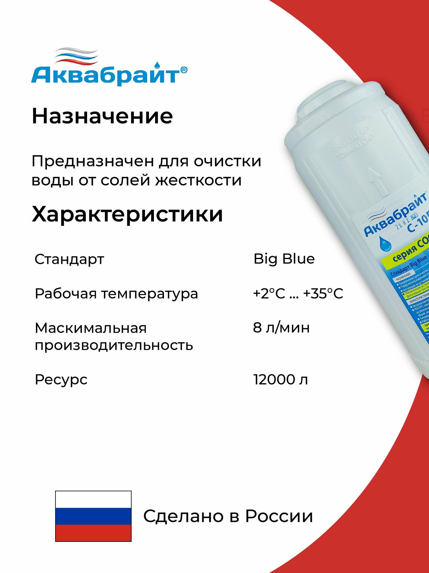 Картридж для умягчения воды Аквабрайт С-10ББ Софт, 10 Big Blue