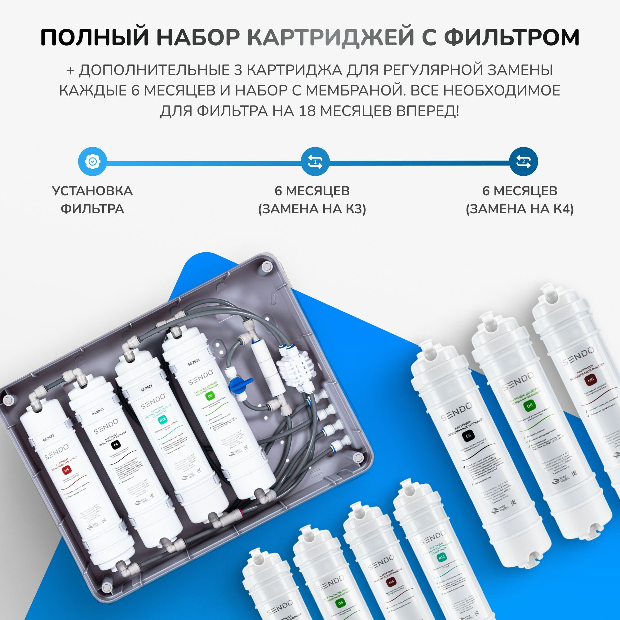 Купить Фильтр обратного осмоса Sendo Aqua A7 + набор сменных картриджей K3+К4 (7 шт.)
