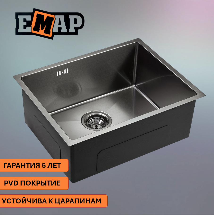 Emar Мойка из нержавеющей стали Emar EMB-123 PVD Nano Dark, мойка, нержавеющая сталь, вороненая сталь