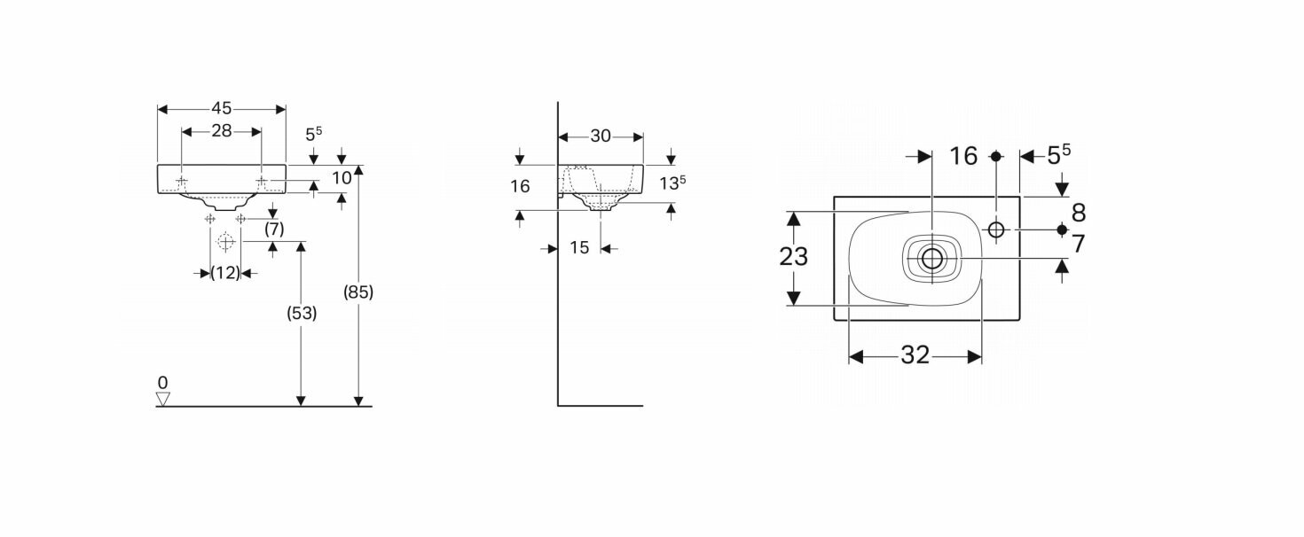 Раковина с отверстием под смеситель справа Geberit Citterio 45х30 500.541.01.1