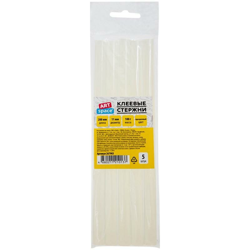 Клеевые стержни ArtSpace, диаметр 11мм, длина 200мм, прозрачные, набор 5шт., европодвес ( Артикул 267903 )
