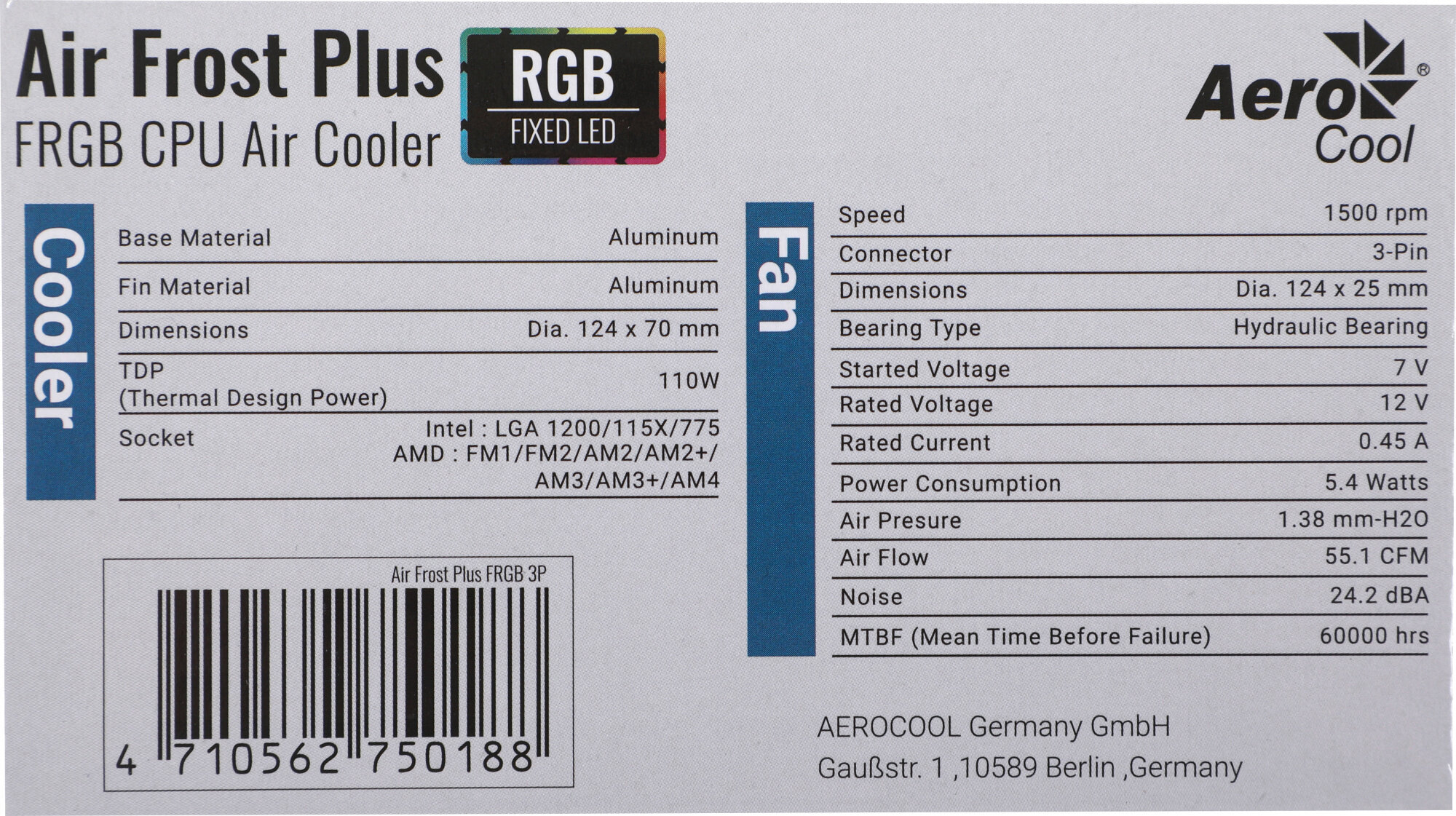 Кулер для процессора Aerocool Air Frost Plus 110W FRGB 4710562750188