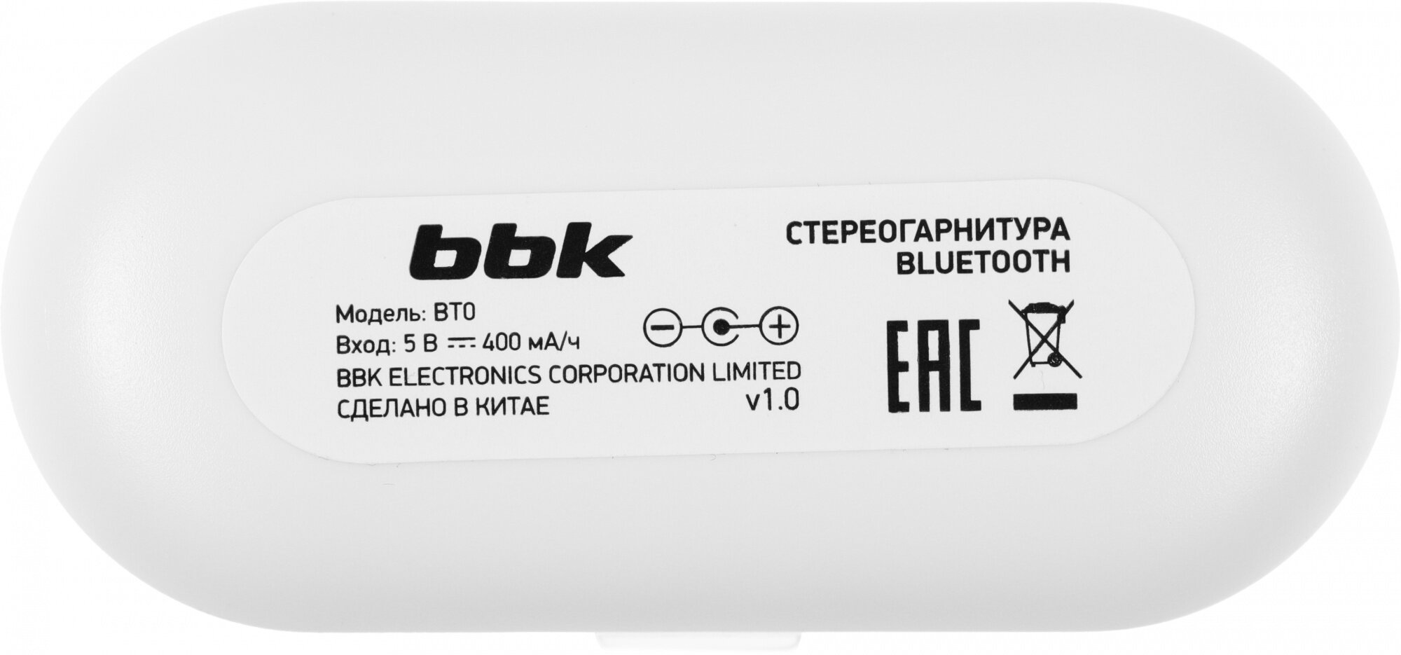 Гарнитура вкладыши BBK BT04 белый беспроводные bluetooth в ушной раковине (BT04 (W))
