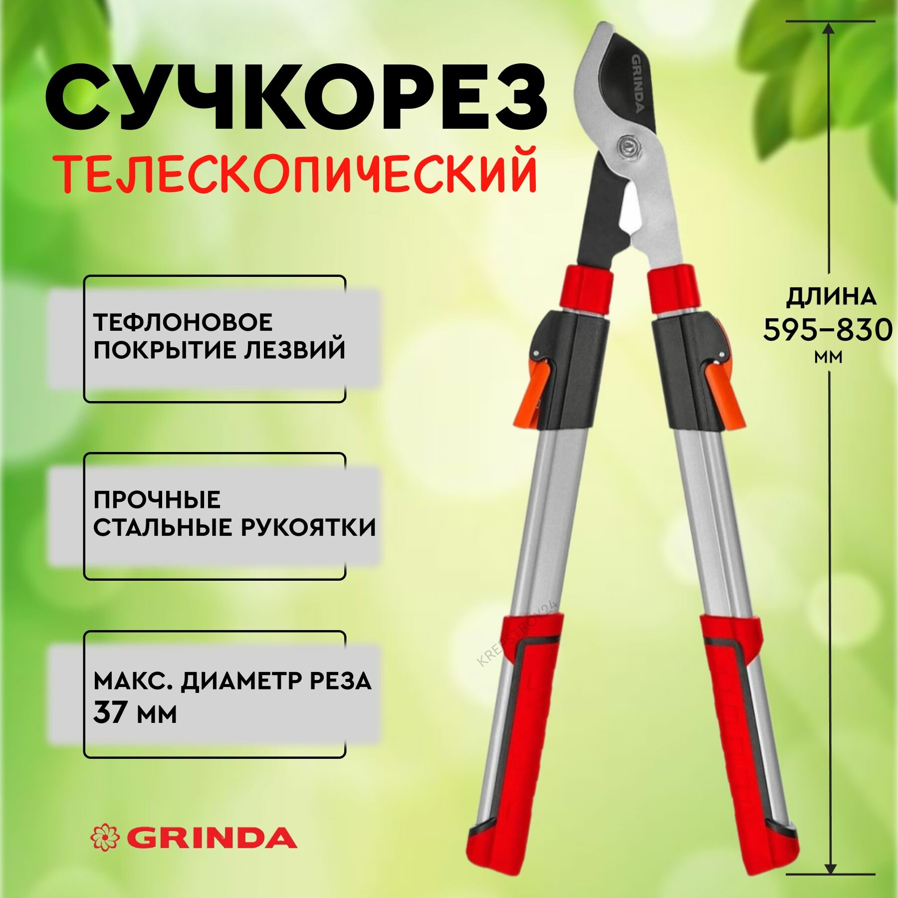 GRINDA T-830 плоскостной телескопический сучкорез, 595-830 мм, (424590)