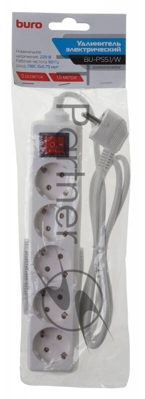 Удлинитель Buro BU-PS5.1/W 1.5м белый