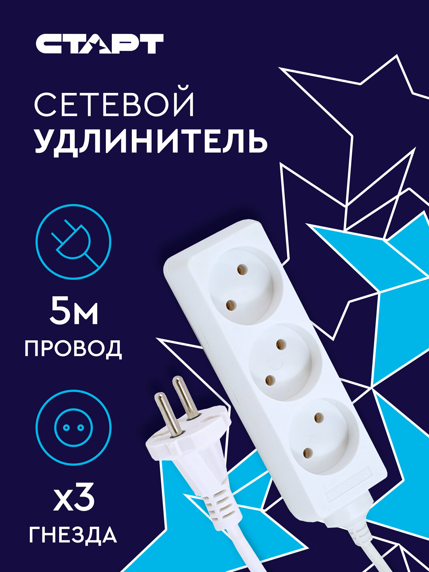 Сетевой удлинитель Старт Электрический, 3 розетки, 3 м