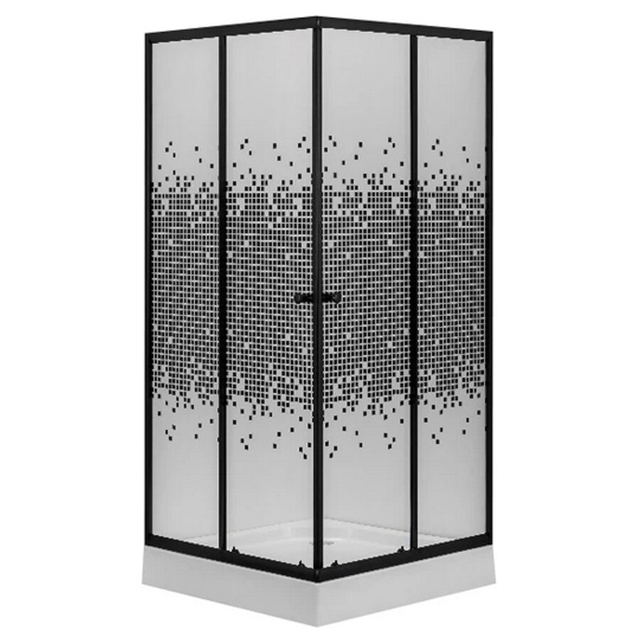 Niagara Eco 100x100 NG-010-14Q BLACK, узорчатое стекло, профиль черный