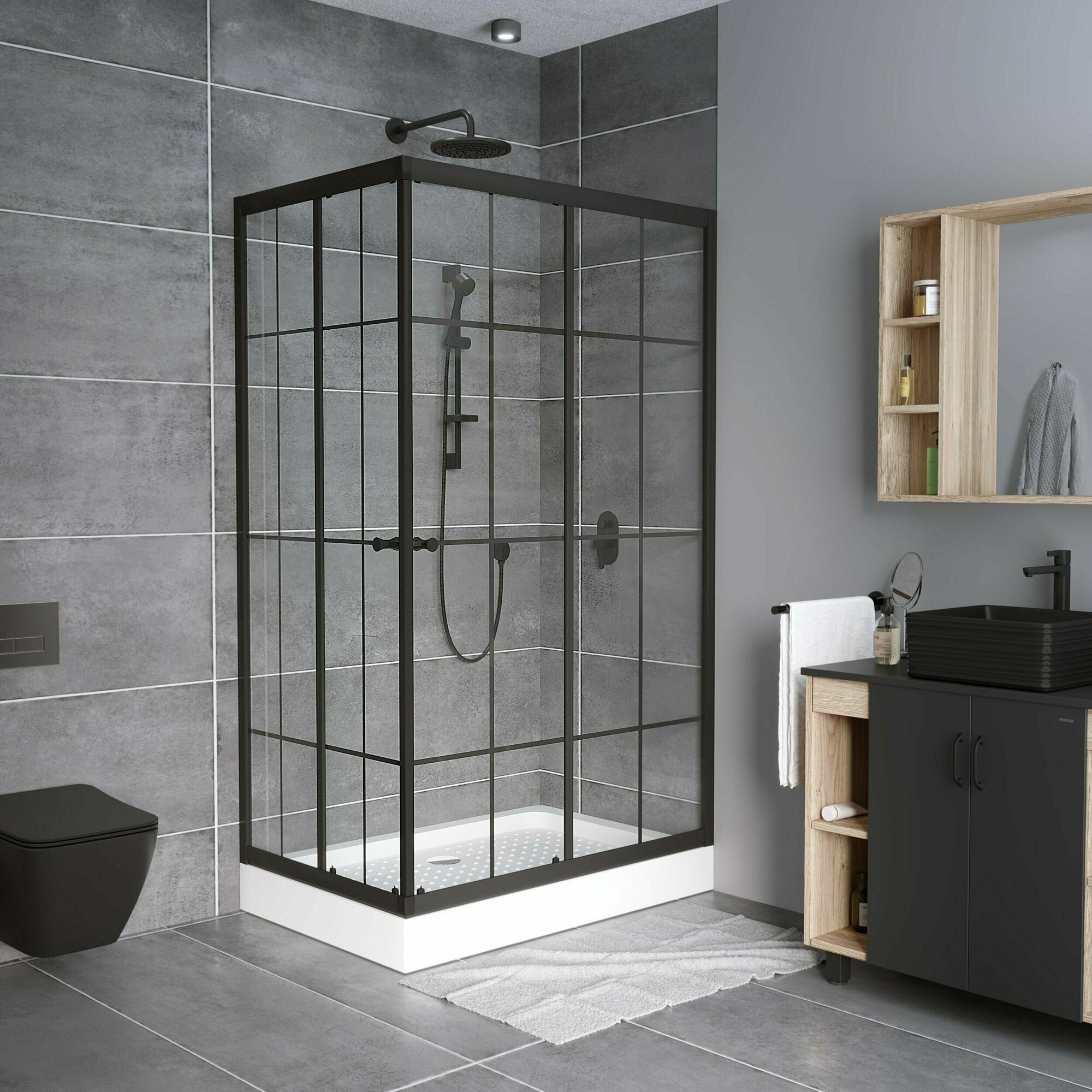 Купить Душевой уголок Niagara Nova NG-0180-14 80х80 профиль Черный стекло прозрачное с принтом