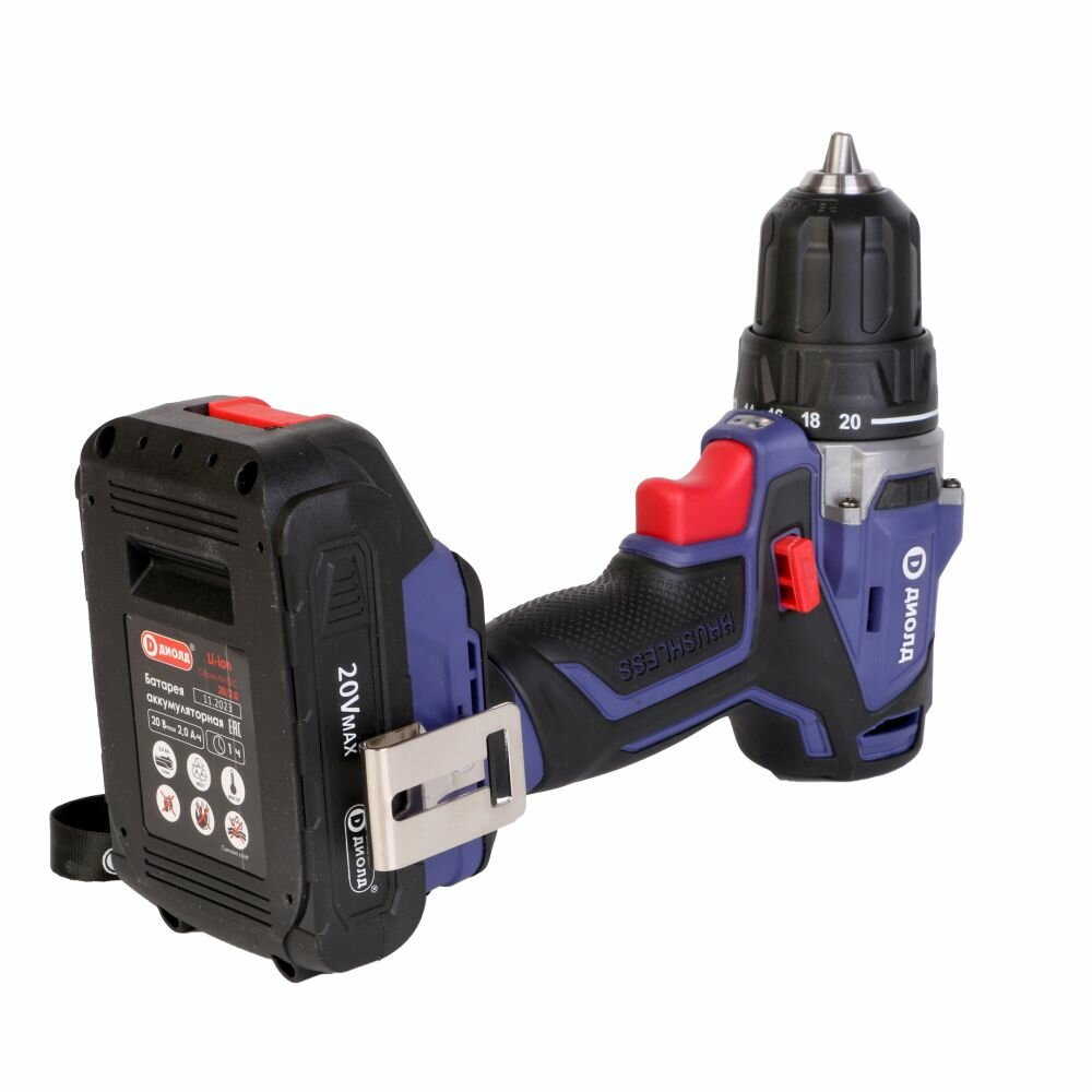 Аккумуляторная дрель-шуруповерт бесщеточная диолд ДЭА-20Л-08, в кейсе, 40 Нм