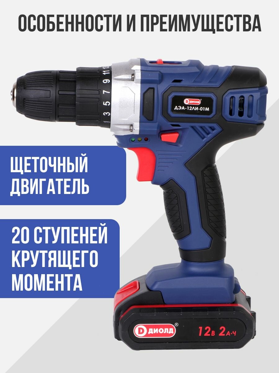 Купить Аккумуляторная дрель шуруповерт Диолд ДЭА-12ЛИ-01М диолд 2АКБ, ЗУ,1200 об/мин