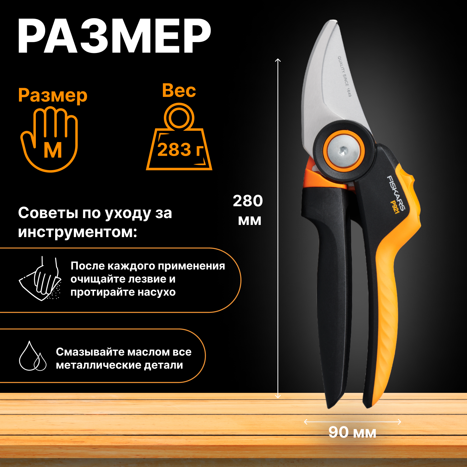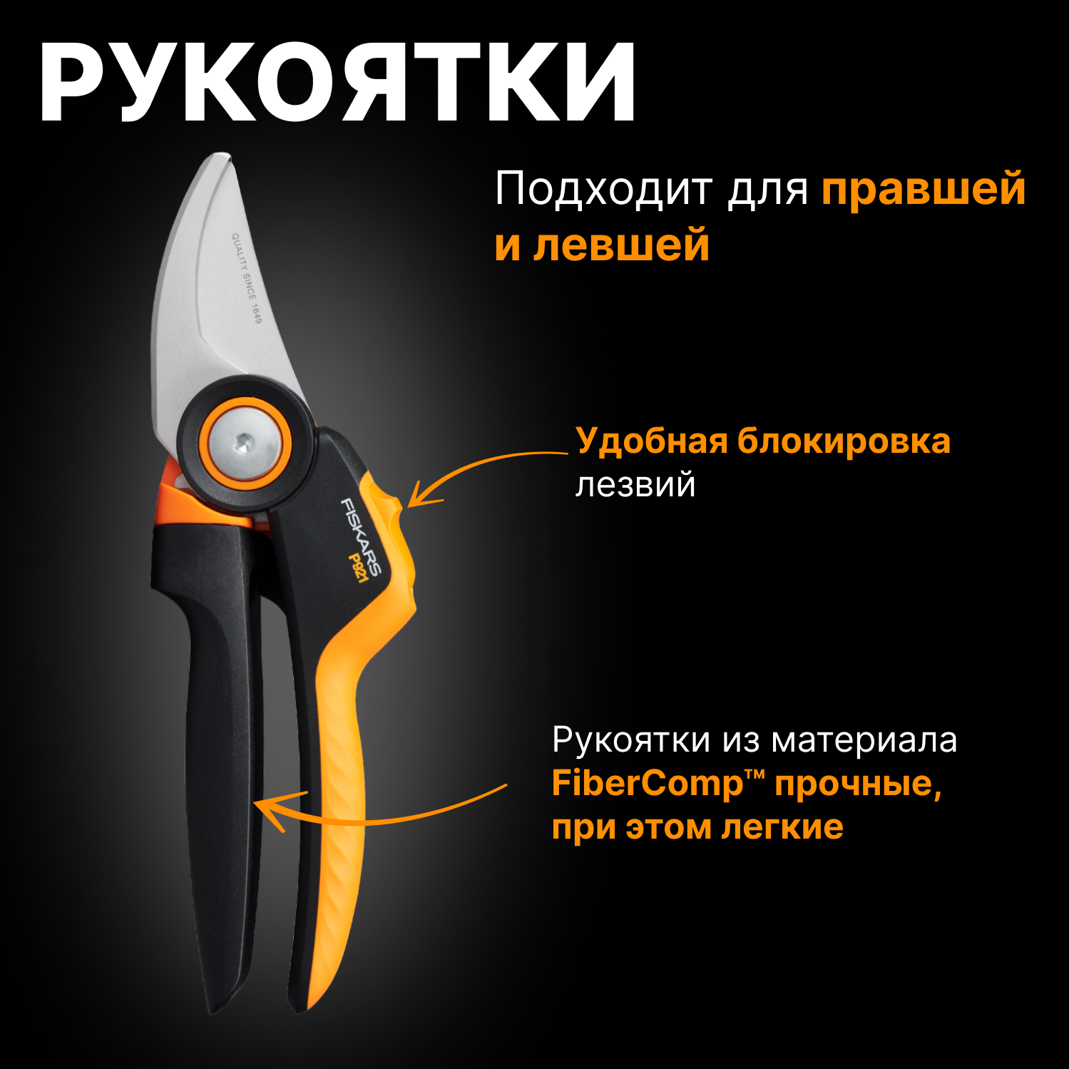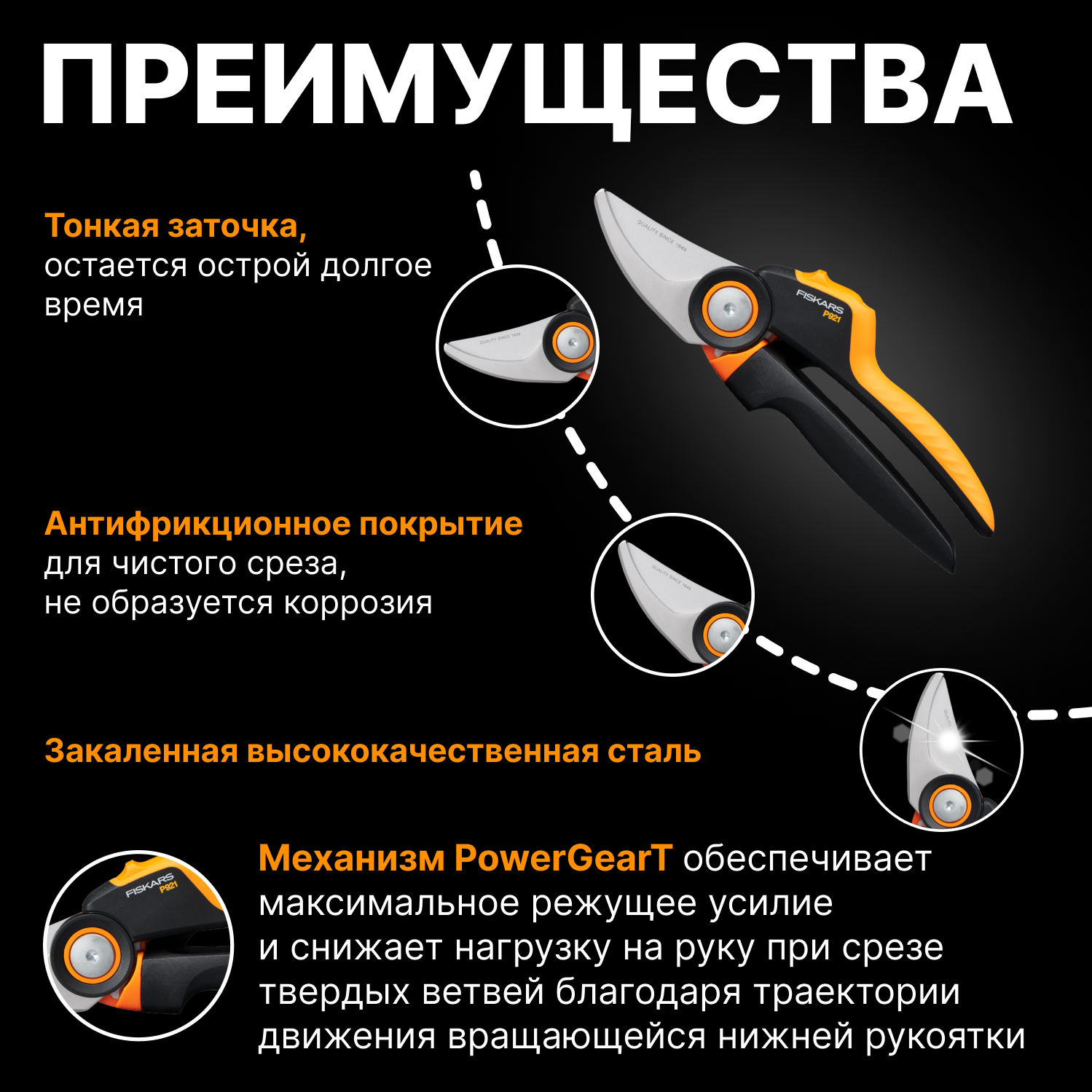 Секатор Fiskars PowerGear P921 черный/оранжевый 1057173