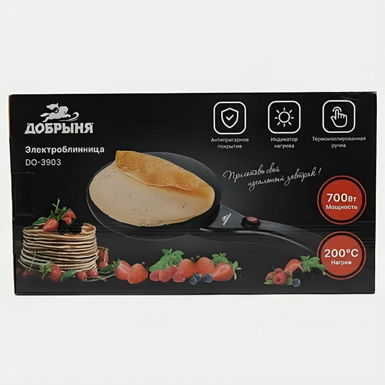 Блинница Добрыня DO-3903 (20см) 700Вт черная