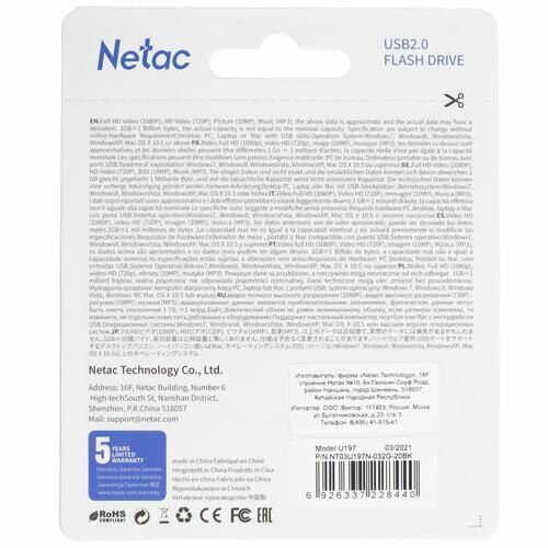 СохранитьFlash drive USB2.0 32Gb Netac U197, Nt03u197n-032g-20bk, RTL интересное:
